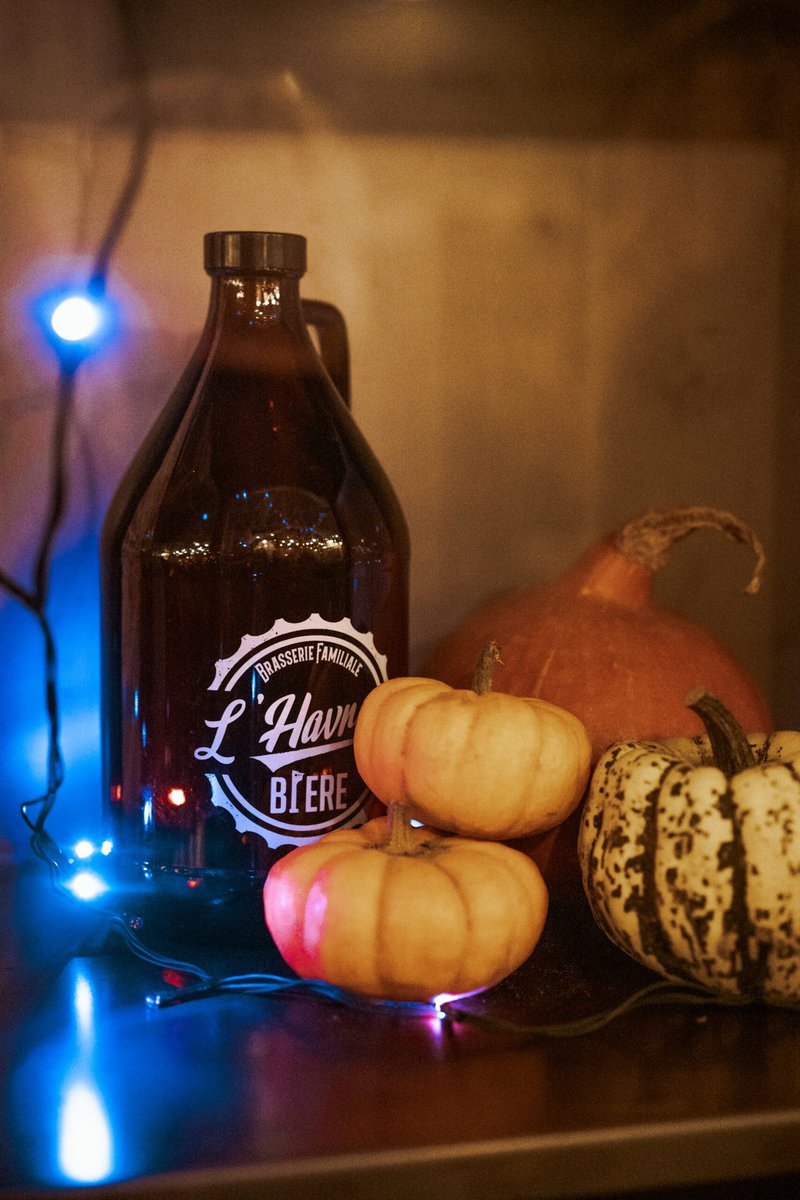 Chez l’Havrais Bière, nous avons choisi de la concocter avec du potimarron, qui, à la différence du potiron, révèle un subtile goût de châtaigne. Comme l’année dernière, nous sommes allés les récolter non loin du Havre : à la Cueillette d’Octeville à Octeville-sur-Mer. Ce sont d’ailleurs leurs citrouilles qui ont décoré, le temps d’une semaine, le comptoir du bar pour un Halloween 100% normand.